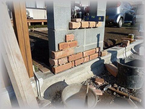 壁面にスライスレンガをモルタルを使って張る方法 暮らしニスタ