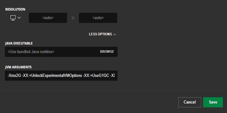 Make sure they are enabled, then remove everything in the JVM arguments box, except from -Xmx1G. For example, you would change this text to say "-Xmx4G" to use four gigabytes of RAM with Minecraft. At the bottom of the page, there's a text box titled JVM Arguments.